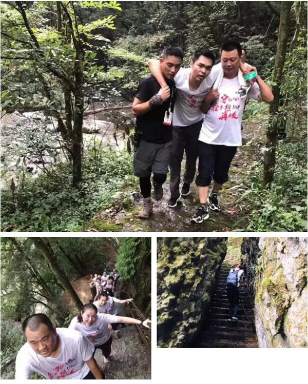 角逐一开始,就有好几名身形矫健的队员加速速度向前冲,与大步队拉开一段距离,看来尊龙凯时真是藏龙卧虎,各领域都不缺人才呀!爬山历程中,各组队员虽然都气喘吁吁,汗流浃背,但都情绪高涨,斗志高昂,一路上各人欢声笑语,相互拍照留恋,纪录沿途美景与欢喜的时光,浩荡的步队宛如一条白色的巨龙盘桓而上,局面甚是壮观。随着海拔上升,路程也越来越险峻,好几段山路接近90坡度,让人心惊胆战,队员们比速度、拼耐力的同时,不忘团队之间的相互勉励。尊龙凯时勇士们不畏恐惧,牢抓两边铁链,手脚并用地一步一步攀登上去,有一位遥遥领先的队员突然腿抽筋,但他没有停下来,强忍着剧痛继续前进,仍坚持领先,各人都被他的顽强毅力所深深折服。逆境可见人心,有的队员腿部受伤,其他队员停下脚步为他推拿舒缓,并帮助着前进;有的队员体力不支,其他队员也伸脱手来拉一把,配合走完这一程。这些场景不但充分体现了尊龙凯时人不抛弃、不放弃的团体精神,还体现出尊龙凯时人不惧艰难,勇于挑战自我的坚强意志!